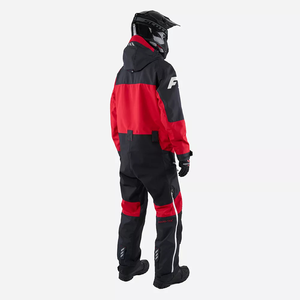 EVOLUTION monosuit is designed for active riding on a snowmobile or ATV, to be used at temperatures up to -20 C. It has a unique anatomical cut, which combines comfort and reliability. Thanks to a durable 2.5-layer fabric with a HARD-TEX@ membrane and a lightweight quick-drying mesh lining, the monosuit provides quick evaporation of moisture from the body surface, protection from wind and sleet. Areas of highwear such as knee and seat area, inner and lower leg are with extra reinforced outer layer. All seams are hermetically glued.The monosuit features length-adjustable integrated suspenders for comfort and height adjustment. Inner Lycra cuffs with thumb holes provide comfort and protection from wind and snow ingress. Internal gaiters on the jumpsuit legs prevent snow and moisture from entering the monosuit and boots. A moisture-proof two-way zipper protects against water ingress and makes it easy to take off the monosuit,especially when mother nature calls.
