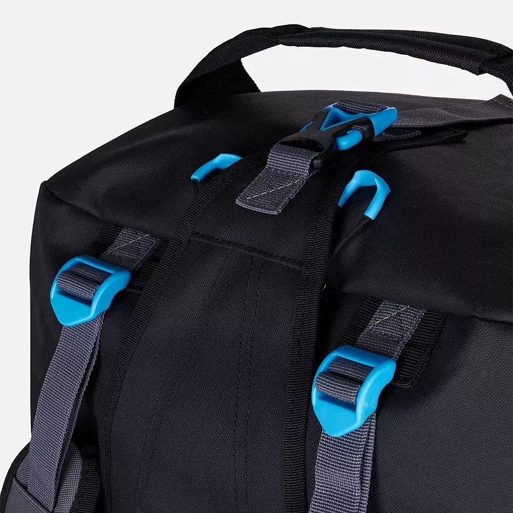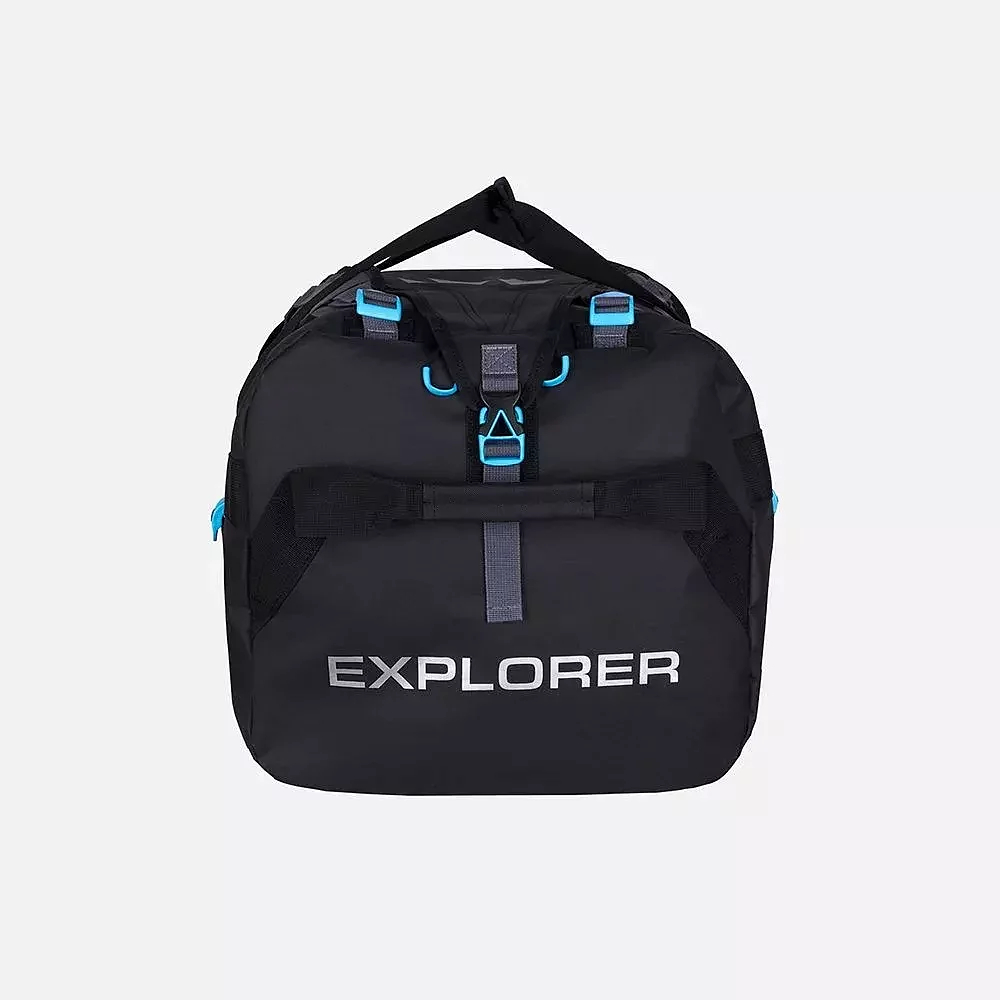 This robust, dirt- and waterproof Explorer bag is designed for serious expeditions. Constructed from extra-strong, frost-resistant, rubberized PVC material, it ensures durability in harsh conditions. Two zippers offer easy access to your gear and are protected from moisture by a wide flap. The bag features reliable, anatomically shaped straps, making it comfortable to carry on your back over short distances. It also includes a convenient handle at one end for easy loading and unloading. The useful volume can be adjusted with side straps, and the bag is accented with branded fittings and logos. With an IP64 protection rating, it can withstand light rain, snow, and splashes. The bag has a capacity of 100 liters.
