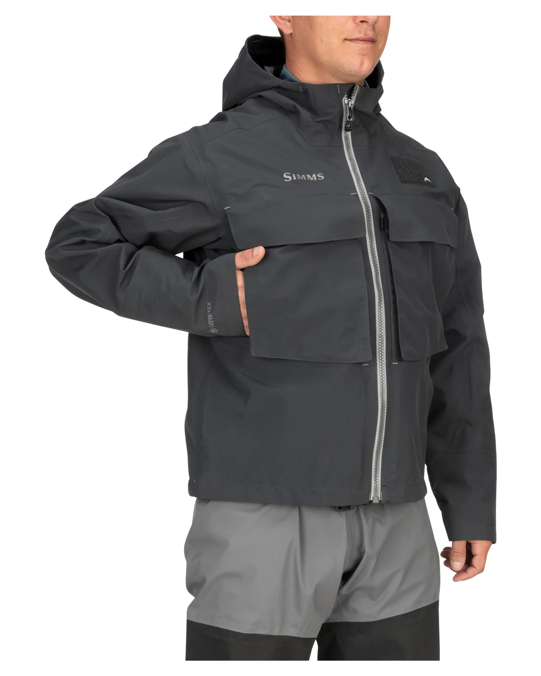 The Simms Guide Classic Jacket is a reliable workhorse for wet weather, providing dependable rain protection, ample storage for fishing gear, and a timeless waist-length hem for compatibility with waders and deep wading enthusiasts.
