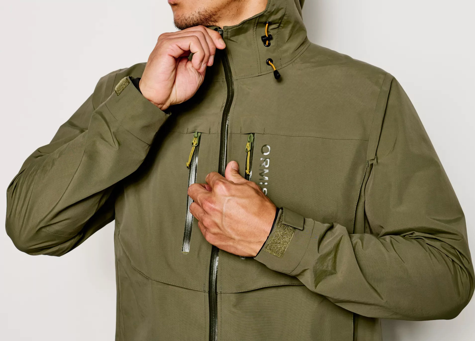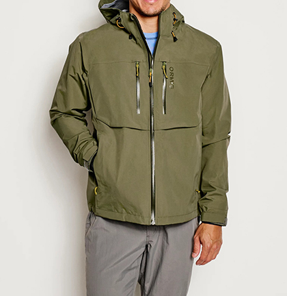 The men's Clearwater is an exceptional value in a full-featured wading jacket with20K Waterproofness and 15K Breathability rating. Three-layer nylon shell fabric with fully taped seams for superior weatherproofing. YKK@ AquaGuard@ water-resistant front closure. Two large front storage pockets and two handwarmer pockets.Integrated neoprene cuffs seal off vulnerable water entry points. Rear yoke D-ring for net attachment and three-way adjustable storm hood with laminated brim. Adjustable hem for secure fit, and a DWR(Durable Water Repellent) finish repels water from the fabric surface