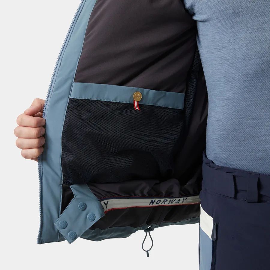 We developed the Men's Kvitfjell Race Insulated Ski Jacket with and for the Team Telenor Alpine Norway ski teams as well as for other alpine racing enthusiasts. When the weather conditions change on the slopes, this jacket keeps you warm and dry thanks to our breathable and waterproof HELLY TECH® Professional technology. We’ve constructed the forearms specifically with ski racers in mind: the forearm offers sufficient space for arm guards and gloves so that you can pull the jacket on and off smoothly. You can experience a full range of motion with the jacket’s 4-way stretch fabric and articulated sleeves. Other convenient features include an adjustable powder skirt, an adjustable hood with a neon brim, and multiple pockets, including ones for your cell phone and ski pass. This 2023 ISPO Award winning jacket is one of several Kvitfjell Race products designed to outfit your ski racing team from head to toe.