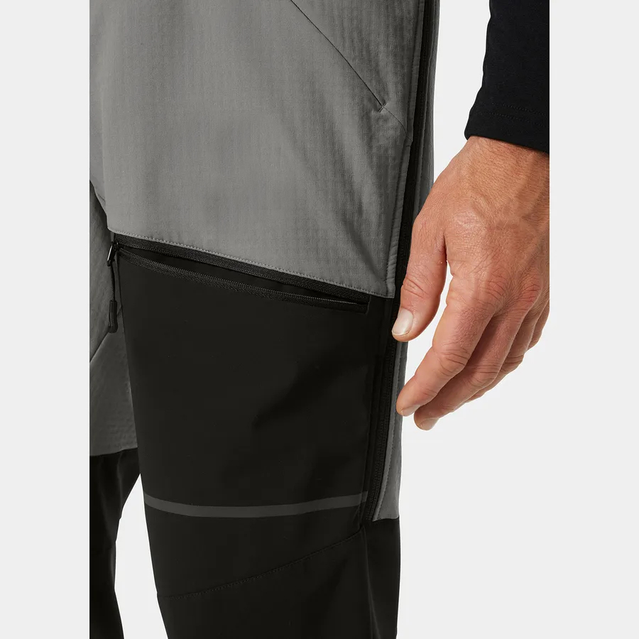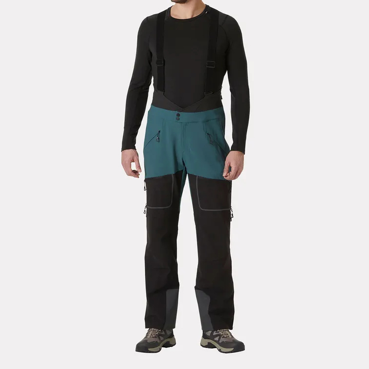 The Odin Backcountry Softshell Bib Pants are the perfect choice for your backcountry ski touring adventures. Crafted from a lightweight, stretchable 4-way fabric, these pants provide you with maximum movement during long ascents and steep drops. RECCO® reflectors provide added searchability in backcountry terrain. Adjustable elastic suspenders ensure a comfortable fit, while thigh pocket and D-ring offer secure storage and attachment points. We've also added a side zipper so you can regulate your temperature and easily get them on and off, along with snow gaiters at bottom legs to keep snow out while you're cruising through deep powder. Well thought out details like an adjustable bottom leg, reinforcement on bottom leg, gusset in crotch for freedom of movement, and articulated knees for better comfort and fit make these pants move with you. Strategically placed hand pockets provide storage for any essentials you may need during your adventure. The perfect companion to the Odin Backcountry Softshell Jacket, which is made from the same body-mapped fabric construction.