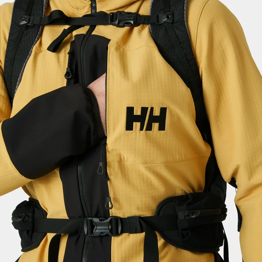 This softshell jacket is made for high-intensity activities like ski touring where breathability and moisture management are key. Made with feedback from professional athletes who needed workwear for their days off, we combined three fabrics to deliver a unique body-mapped combination of stretch, durability, and breathability. With safety in mind, the opening in the front enables quick and easy access to a beacon. A water-resistant exterior and an adjustable hood deliver protection from the elements while stretch cuffs make for an excellent fit with gloves. Finally, this softshell features a dual chest pocket for easy access even when wearing a backpack and RECCOR reflectors for search ability.