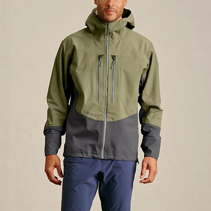 Spend more time stalking fish and less time worrying about bad weather with our Men's PRO Fishing Jacket, our ultimate protection from the elements. Even when you're zipped up tight, the abrasion- and puncture-resistant 4-layer stretch CORDURA@ fabric is breathable, so you won't overheat. Look for must-have details like YKK AquaGuard@ zippers, fully taped seams, and neoprene cuffs to seal out the moisture. Pit zips give you unrestricted access to your PRO Bib or Waders without taking off your jacket. And it has two large chest pockets to stow and protect what you need on the stream in any weather.