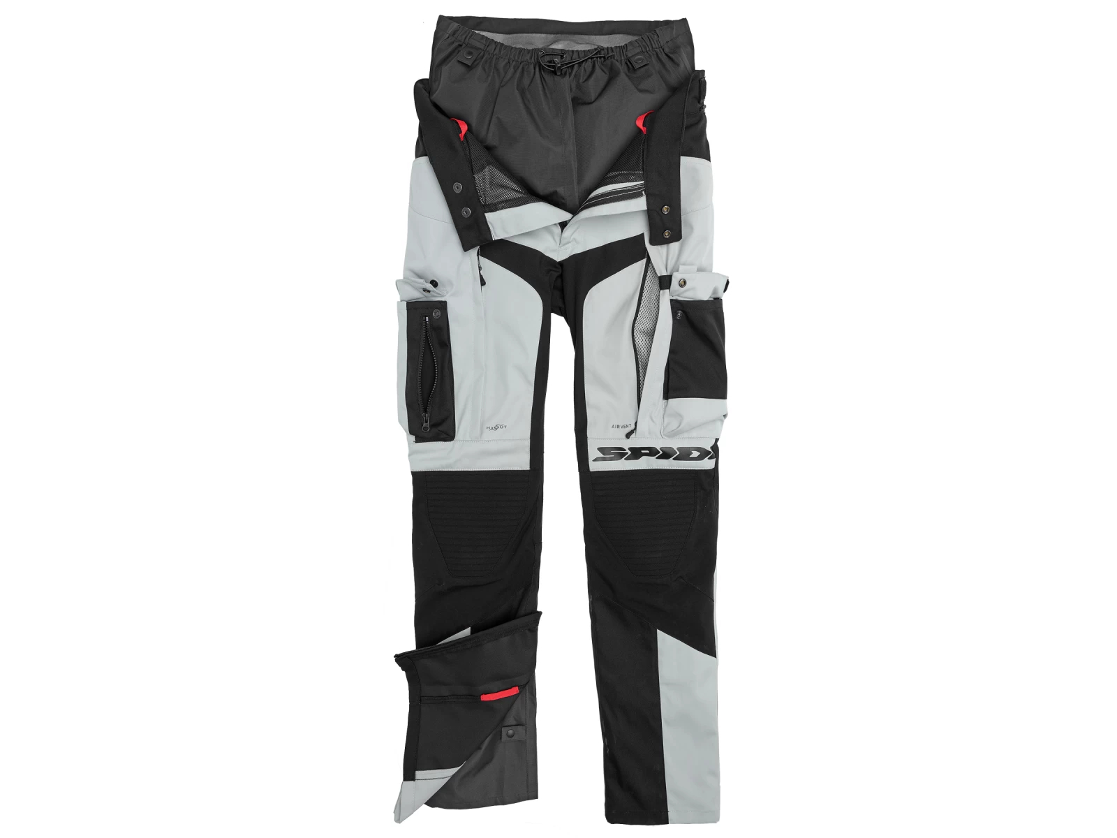 Removable three-layer waterproof, breathable, and windproof H2Out® membrane that can be worn under or over pants. Zipper for connecting pants to jacket. Adjustable ventilation openings with zippers. Velcro adjustment at waist and bottom of pants.