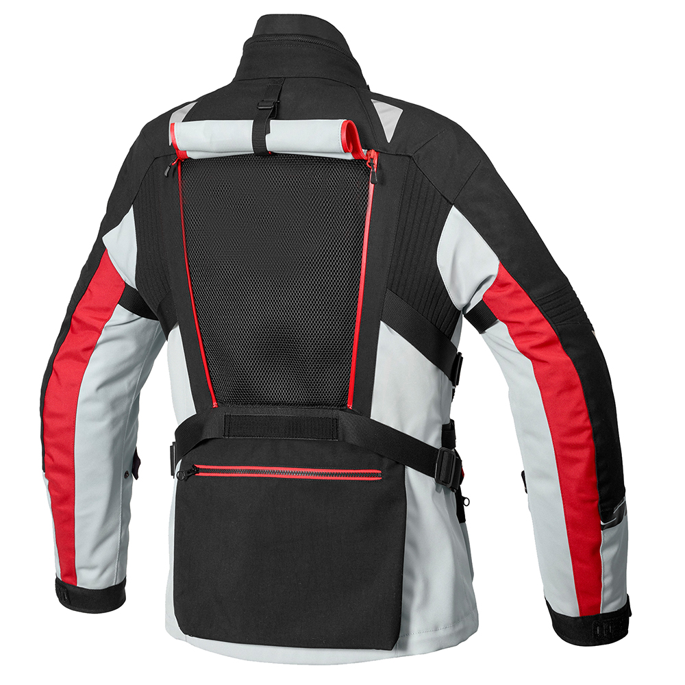 The jacket is suitable for all weather conditions. Removable 100 g holofiber lining. Innovative Inside Out system, the jacket is equipped with an H2Out 10K/10K membrane, which can be worn over the jacket in case of heavy rain or used as a lining during light rain. Waterproof outer pockets. Waterproof zippers. Zipper for connecting to pants. The jacket is compatible with the Spidi V63 hydrator. Adjustable ventilation openings on the chest, arms, and back.