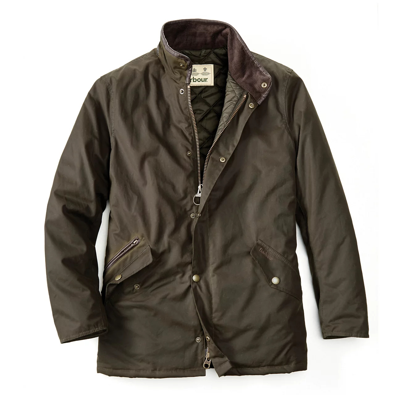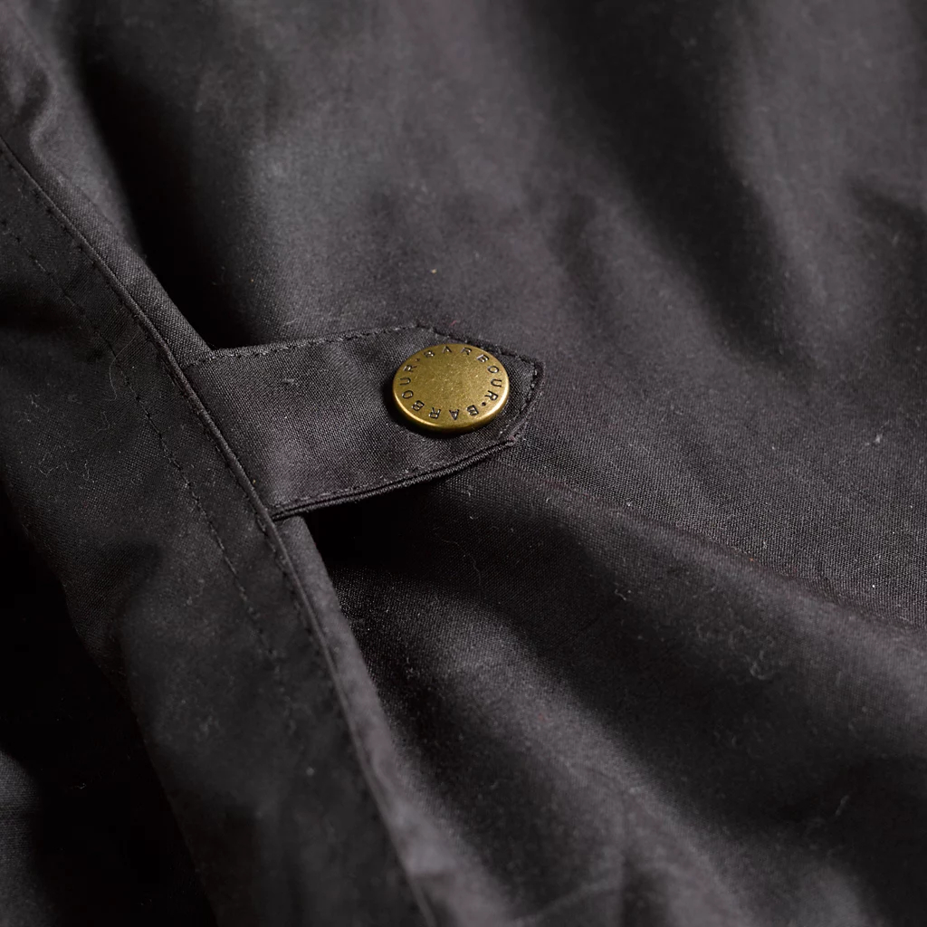 Clean and understated, Barbour's mid-length waxed cotton Prestbury Jacket is essentially a Sylkoil version of the ever-popular Powell jacket. This jacket wears equally well in country settings as it does on city streets