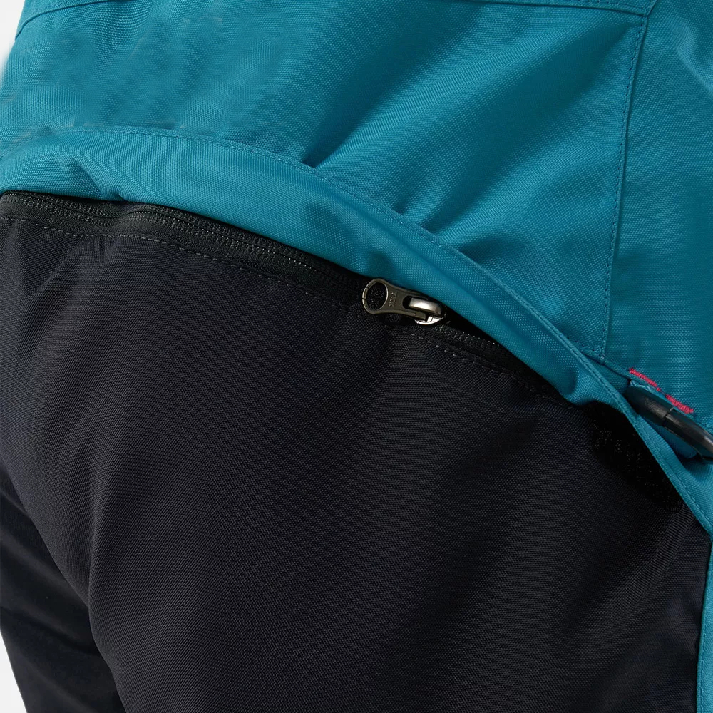 The overalls are equipped with length-adjustable integrated suspenders for additional comfort. Internal lycra cuffs with thumb hole provide comfort and protection against wind and snow ingress. Inner gaiters on the overalls prevent snow and moisture from getting into the overalls and boots. Moisture-proof two-way zipper protects from water ingress.The overalls are equipped with a hood adjustable in two planes, a hygroscopic microfleece collar, a ventilation system with a protective net, an internal earphones, articulated 3D knees, two warm side pockets with zippers, two hip pockets with zippers, a pocket on the sleeve, oneinner pocket with a zipper and one roomy inner pocket made of net, as well as a "bomb hatch",which makes it easy to do one's needs.